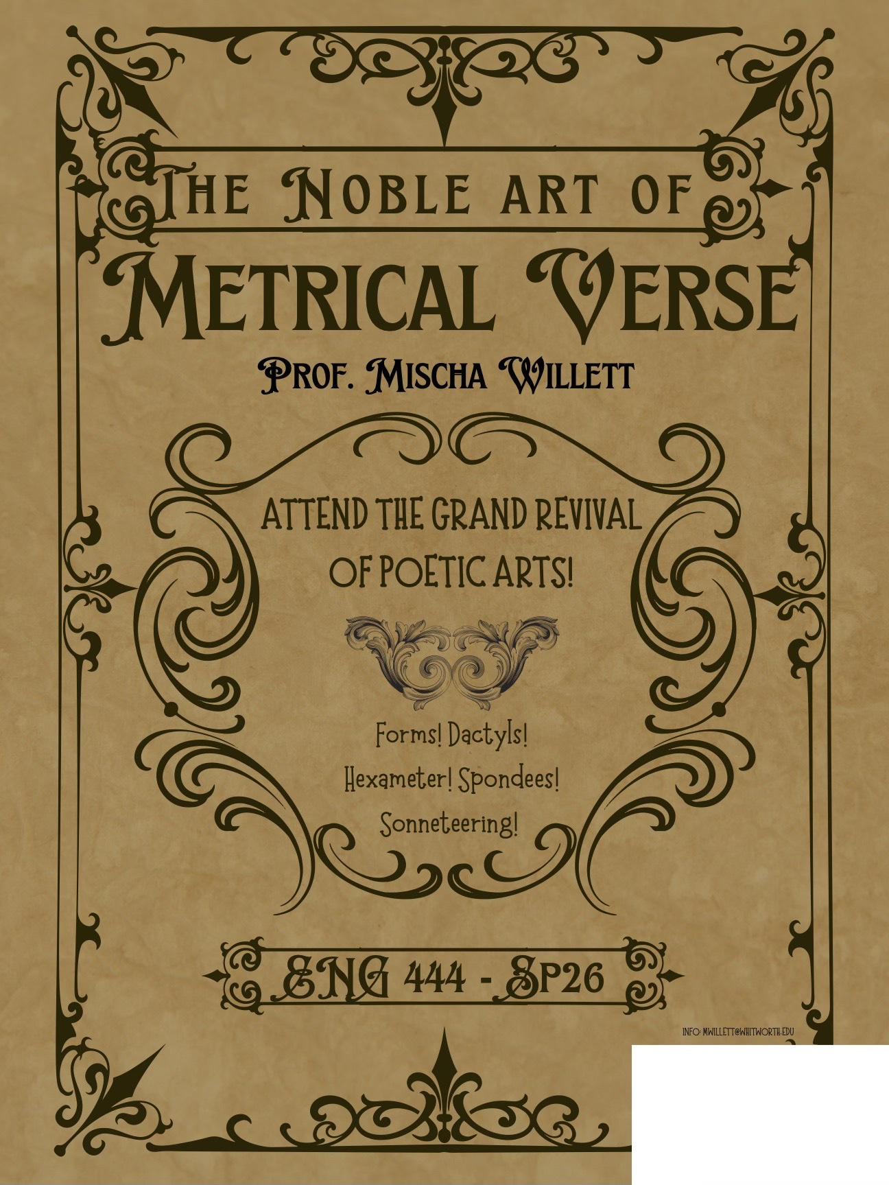 Oh, and Iām gearing up to teach an undergraduate course in Spring, my first here at Whitworth, all about spondees, anapests, trochees etc. Iām calling it āThe Noble Art of Metrical Verse,ā and if you can believe itāwhat sorts of wonderful English majors are these?āthe class filled up instantly.